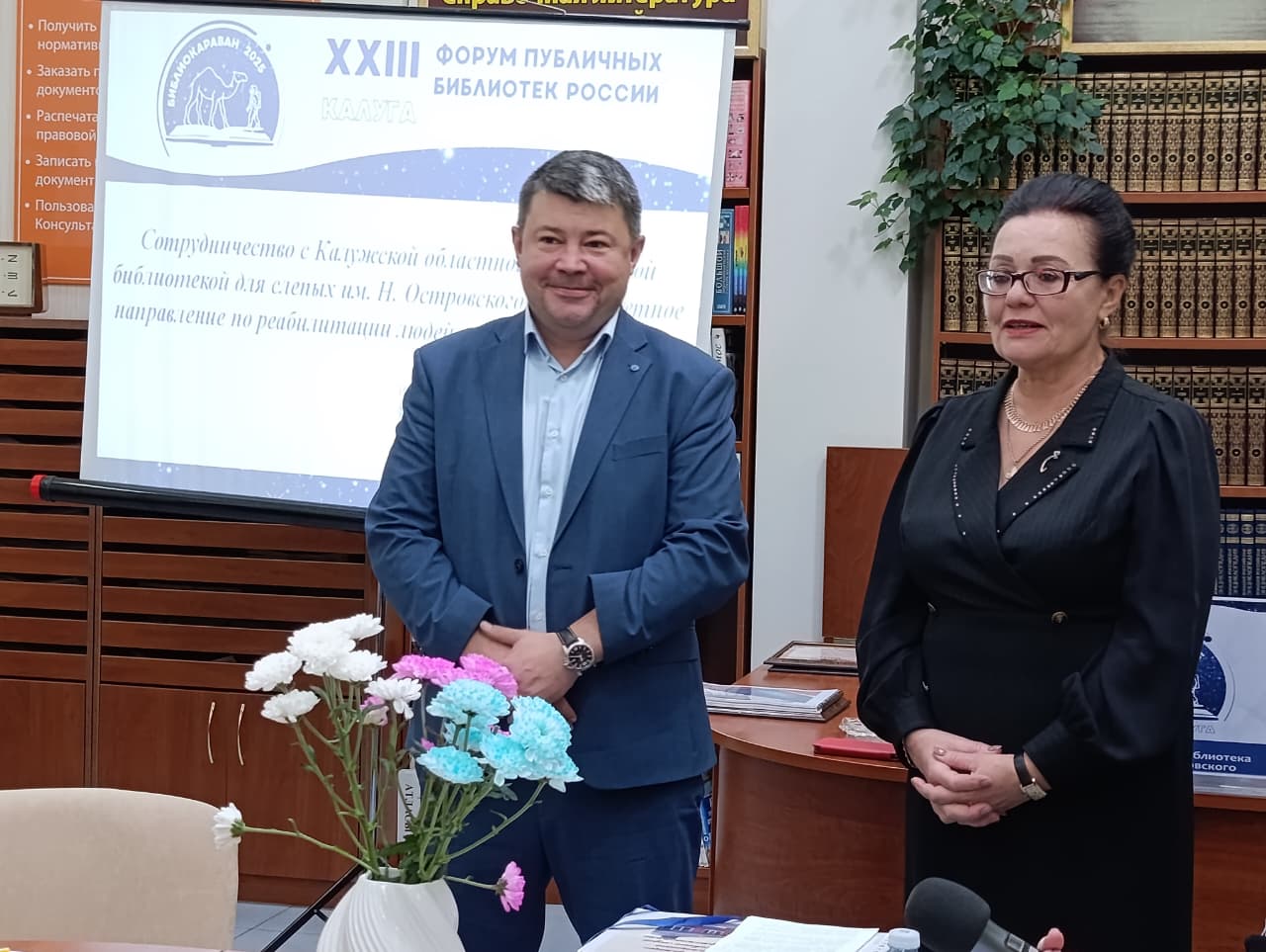 Александр Михайлович поприветствовал слушателей Форума и отметил в своем выступлении: «Сотрудничество с Калужской областной специальной библиотекой для слепых им. Н.Островского: приоритетное направление по реабилитации людей с нарушениями зрения», что Калужский филиал МНТК имени Фёдорова и специальную библиотеку им. Островского связывают многолетнее сотрудничество, которое является практически единственным в нашей стране примером гармоничного содружества между офтальмологической клиникой и учреждением культуры.