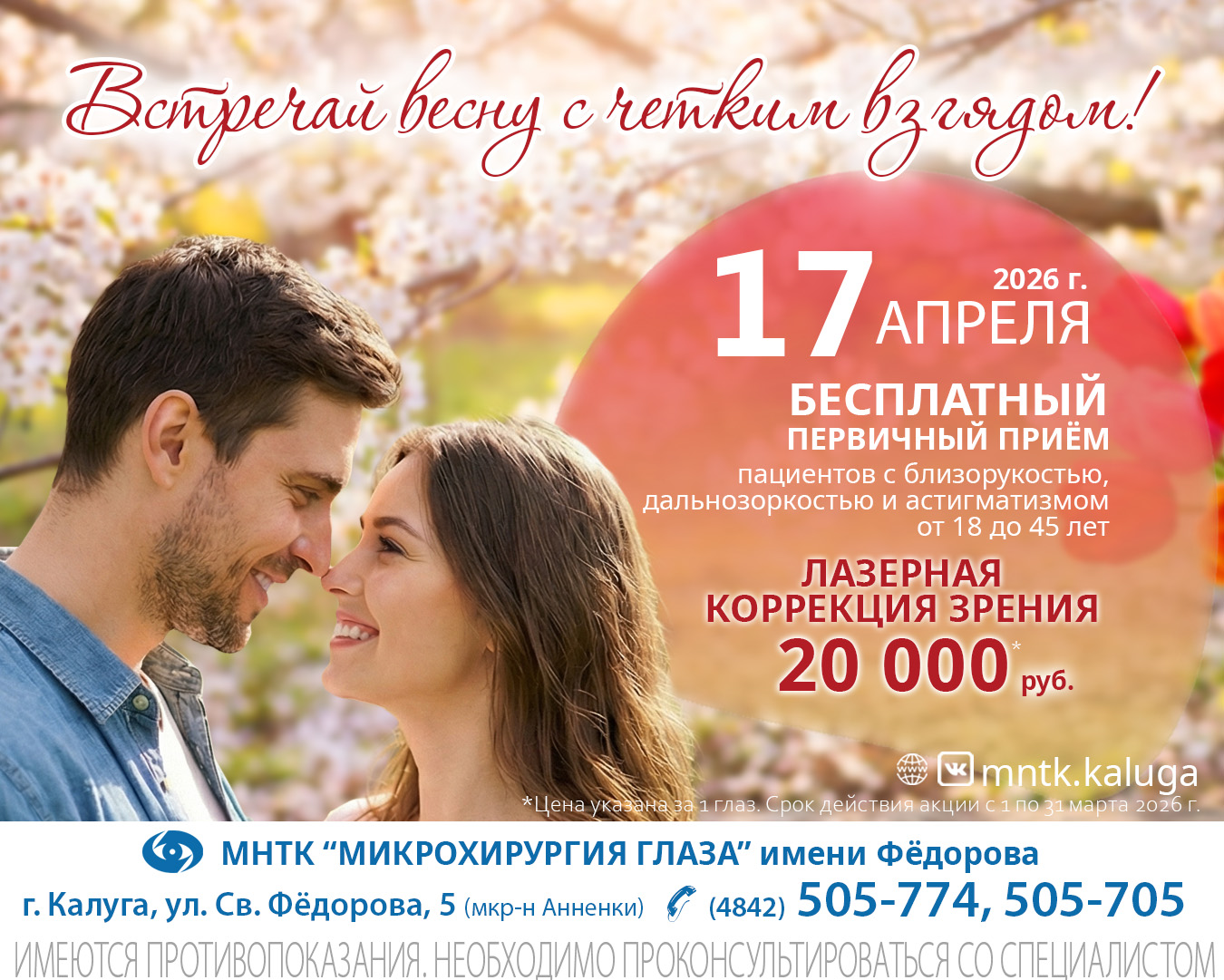 Специальная цена от 20 000 рублей на лазерную коррекцию зрения ДО КОНЦА АПРЕЛЯ!