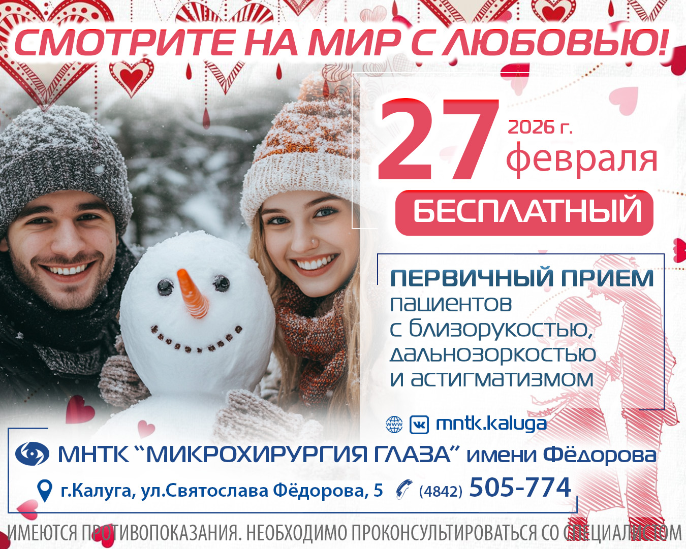 Бесплатный первичный прием для пациентов с близорукостью, дальнозоркостью и астигматизмом