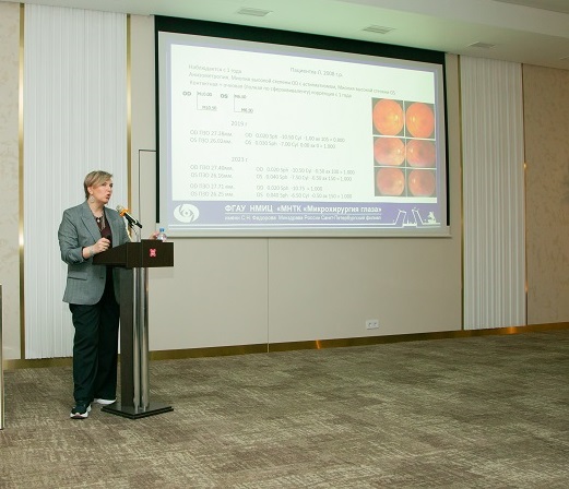 Трифаненкова Ирина Георгиевна, д.м.н., заместитель директора по научной работе Калужского филиала МНТК «Микрохирургия глаза», профессор кафедры постдипломного образования Медицинского института ФГБОУ ВО «КГУ им. К.Э. Циолковского» (г. Калуга) в своём выступлении подчеркнула, что ретинопатия недоношенных (РН) — это пожизненное заболевание, а не только проблема раннего детского возраста. Как в активной, так и в рубцовой фазе у пациентов сохраняются патологические изменения разной степени тяжести. Врачи «взрослой» офтальмологии должны быть готовы к ведению пациентов с последствиями недоношенности на протяжении всей их жизни.